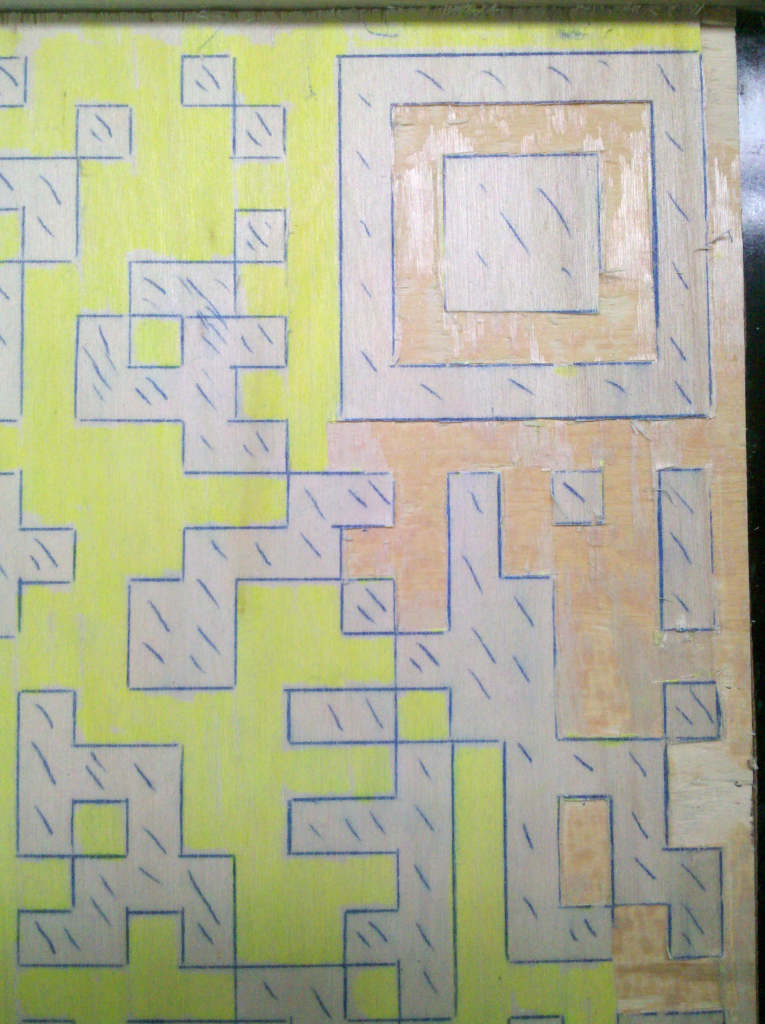 Meine Idee war, QR-Codes in Holz zu schneiden; für jeden Gegenstand einen Code - und davon so viele wie möglich.