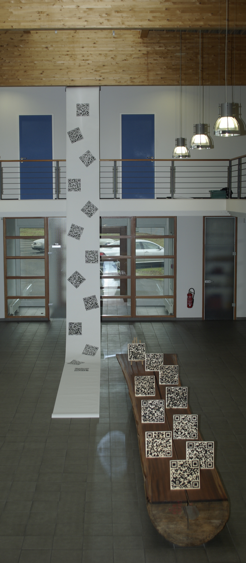 Nachdem die Druckstöcke fertig waren, habe ich sie auf eine Tapetenrolle gedruckt – es wurden ca 8 laufende Meter mit QR-Codes.